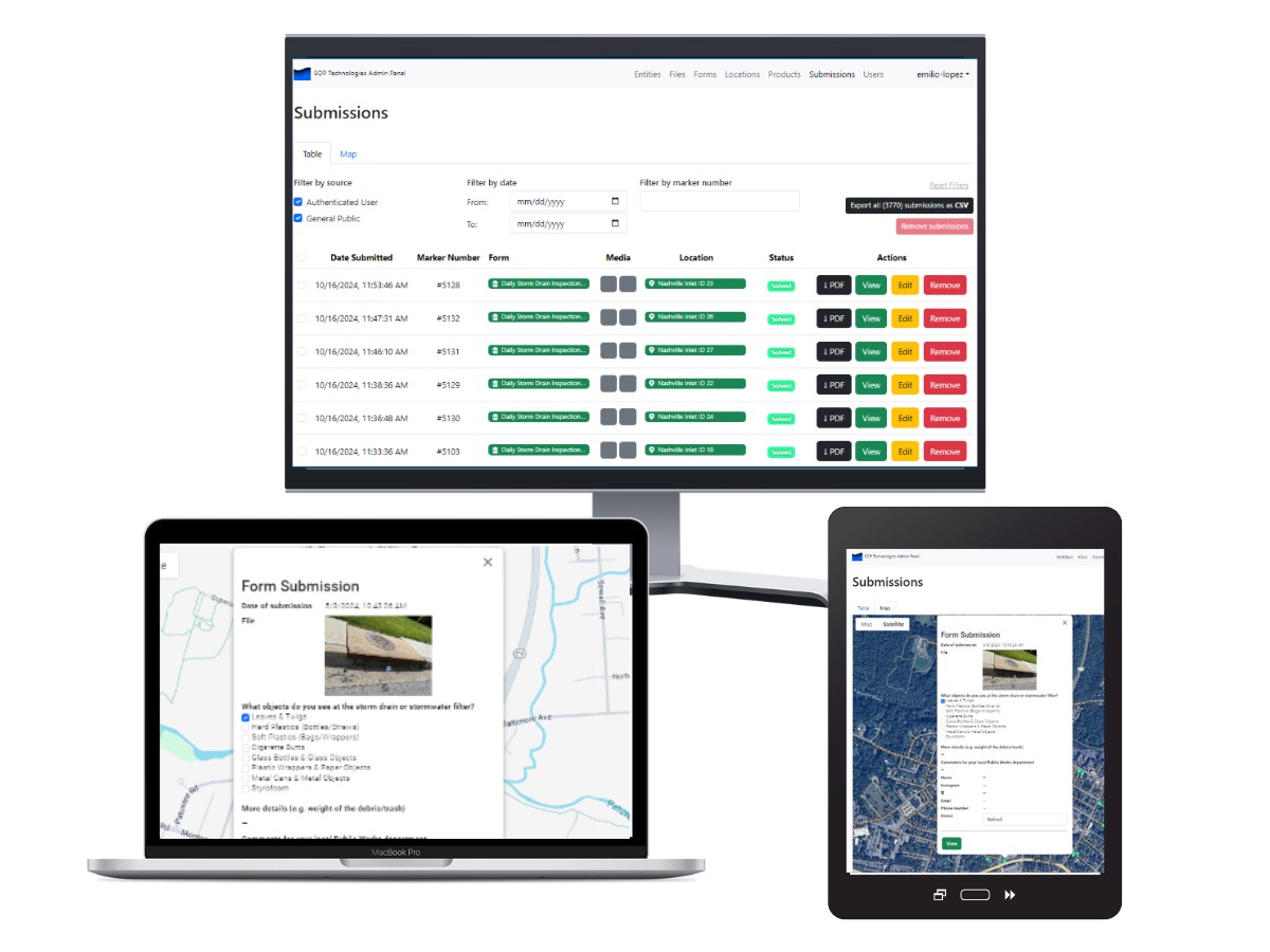 Included with our stormwater system are our patented QR Code Storm Drain Markers and software for Operations and Maintenance (O&M) teams and Community Engagement. Use the QR Code Markers and software for Asset Management, engaging your community to share what they see, and to log activities for MS4 and NPDES reporting.
